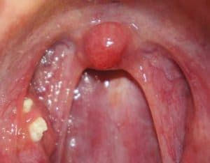 Single One White Spot on Tonsil.
